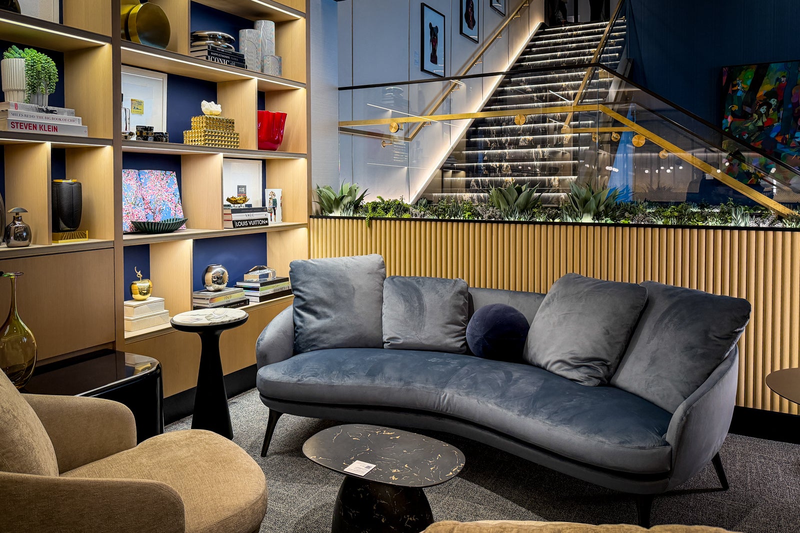 This new Las Vegas Chase Sapphire Lounge, where you’ll find some shining finishes that give a nod to the city’s decor and nightlife and desert-themed accents that honor the area’s landscape, spans two stories, measures 4,590 square feet and offers seating for up to 87 people.