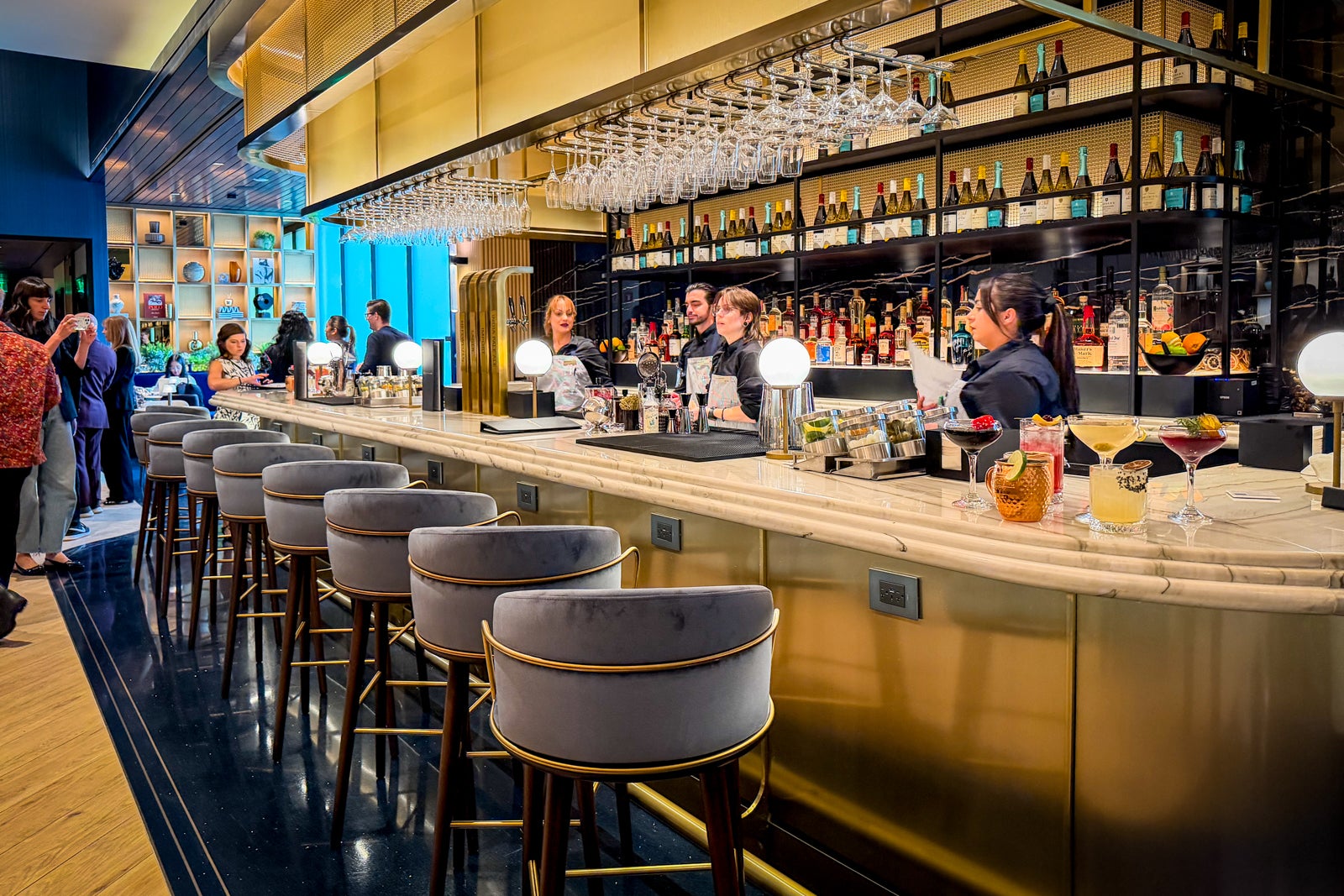 Come hungry and leave full and happy courtesy of goodies such as Momofuku’s famous pork bun, crispy nori potatoes and a spicy cucumber salad. If you’ve visited other Chase Sapphire lounges, you may also recognize signature dishes such as the Sapphire noodles with broccoli, edamame, chickpeas and peppers.
