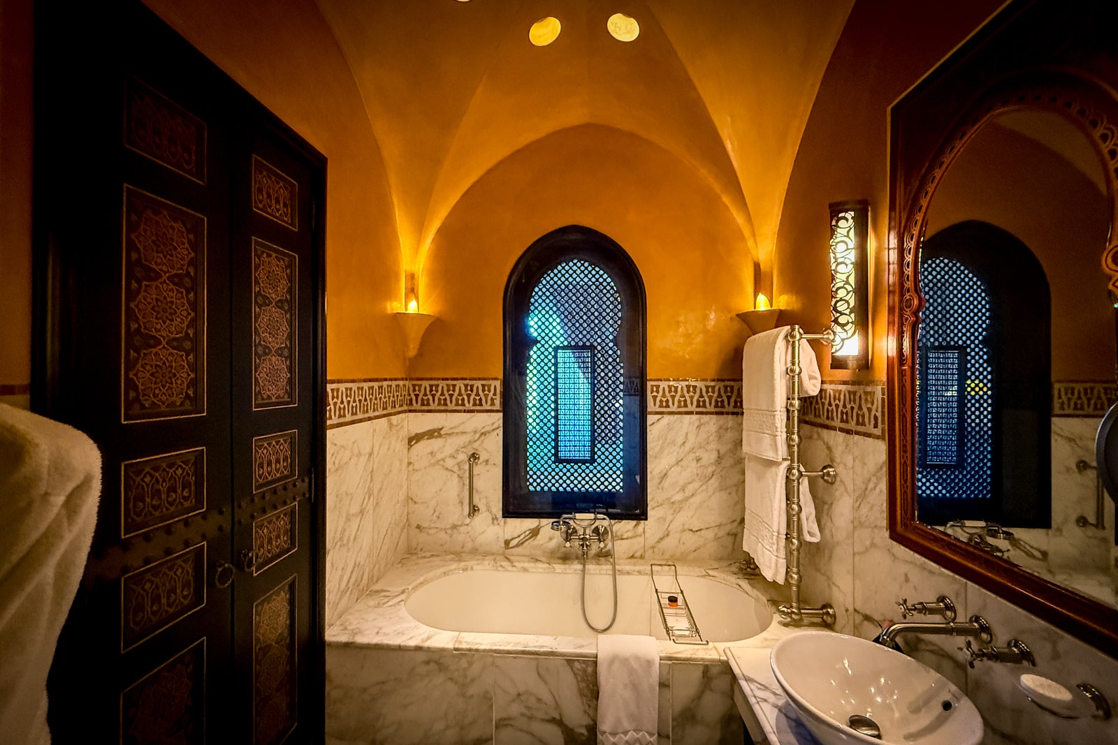 This isn’t a hotel review, but I can’t talk about this beautiful room without mentioning how fabulous it was. With picture-perfect Moorish-style doorways, intricate paneling, a marble-lined bathroom with a soaking tub, and the chance to sit outside in the perfect January sun overlooking one of Marrakech’s most iconic areas, I really felt like royalty.